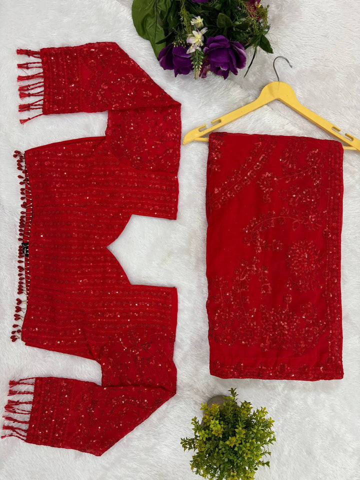 NEW DESIGN ON FAUX GEORGETTE FABRIC WITH EMBROIDERY & FANCY LACE WORK SAREE WITH STITCH BLOUSE