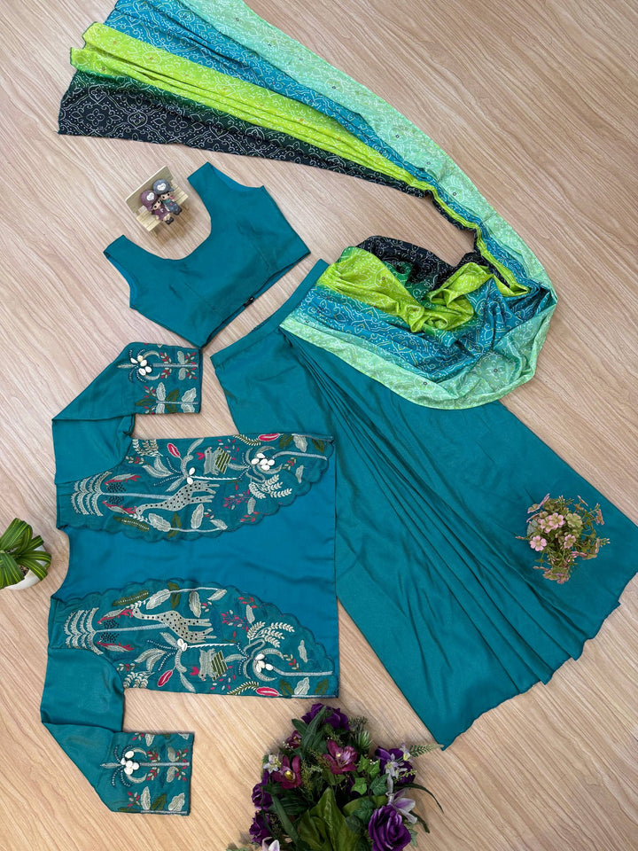 Work:- LEHENGA-SAREE, BANDHANI PRINT PALLU / 2.5 mtr PALLU CUT